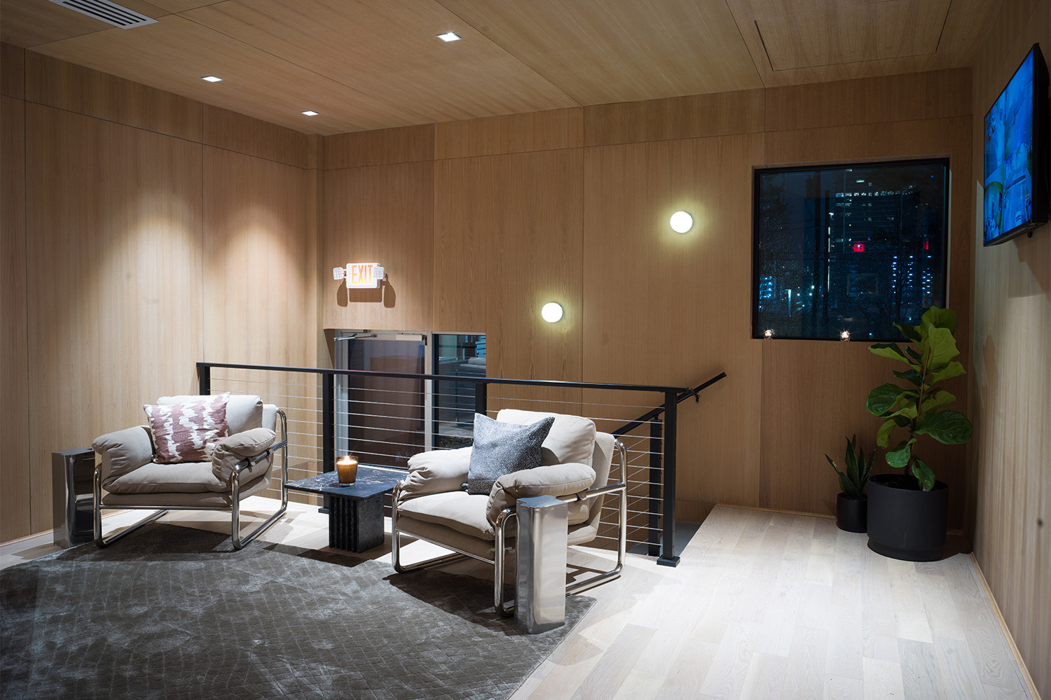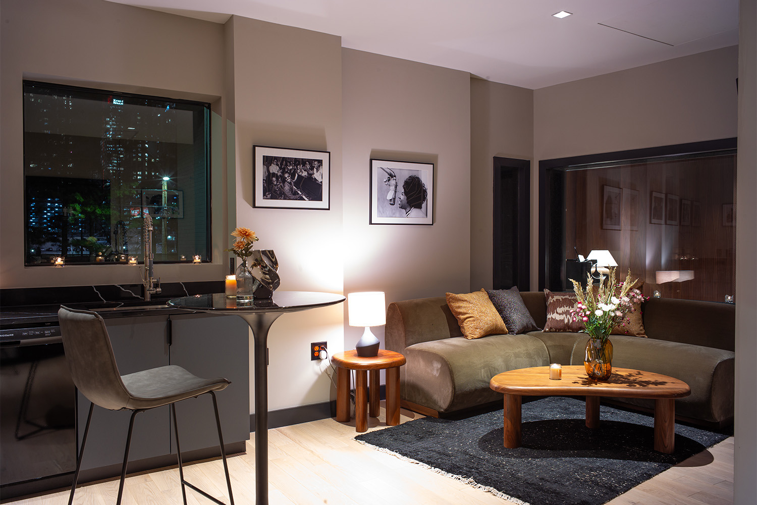 Violet Isle is a private, gated recording studio featuring sweeping views of the vibrant Atlanta skyline. The studio was designed with careful attention to ergonomics and work flow – keeping service, hospitality, and privacy at the forefront with multiple support spaces around one premier audio production suite.