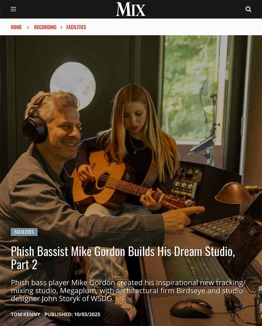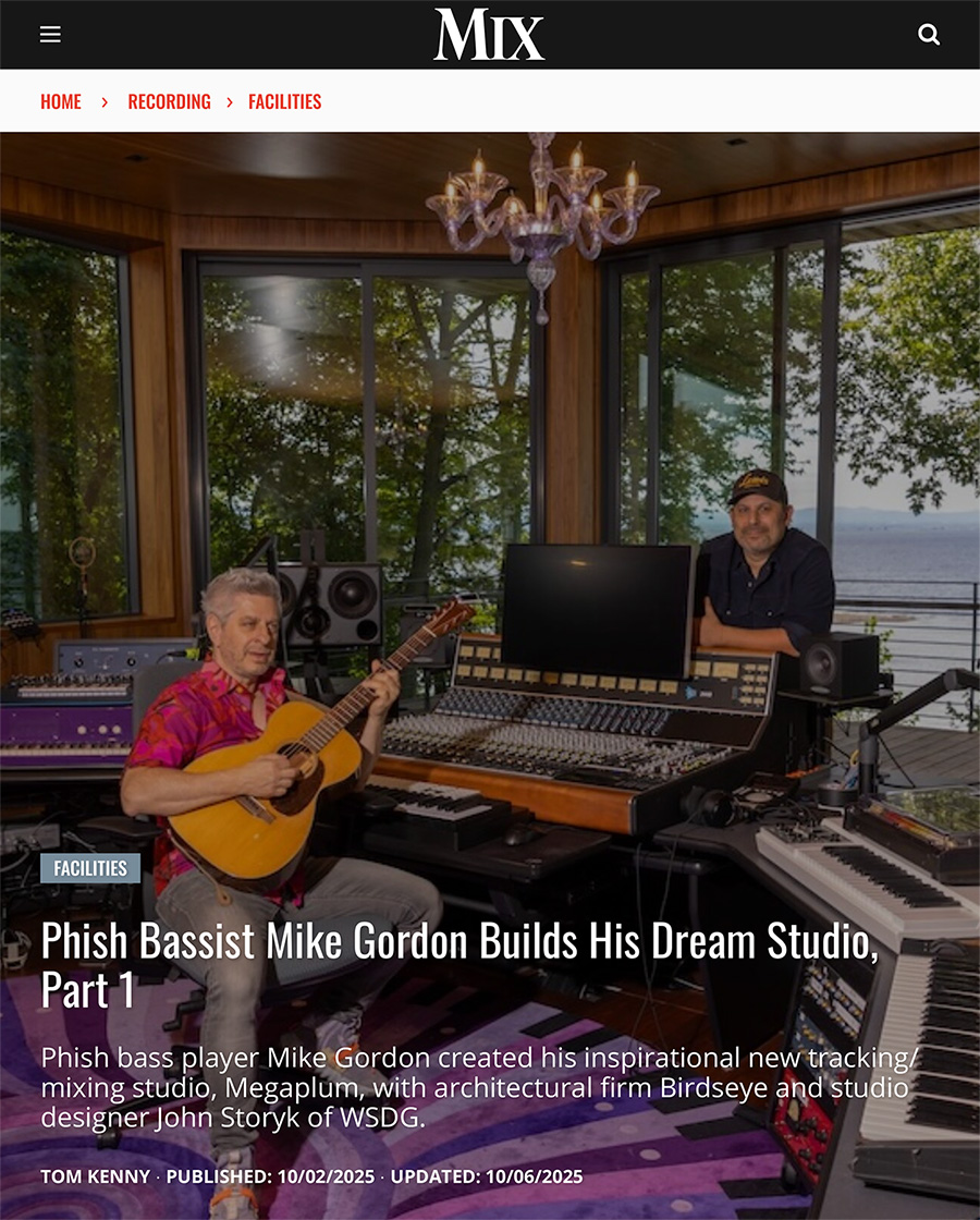 WSDG is pleased to announce that Megaplum is this month’s cover story in MIX Magazine, which details the studios origins, design details, and Mike’s current musical projects.