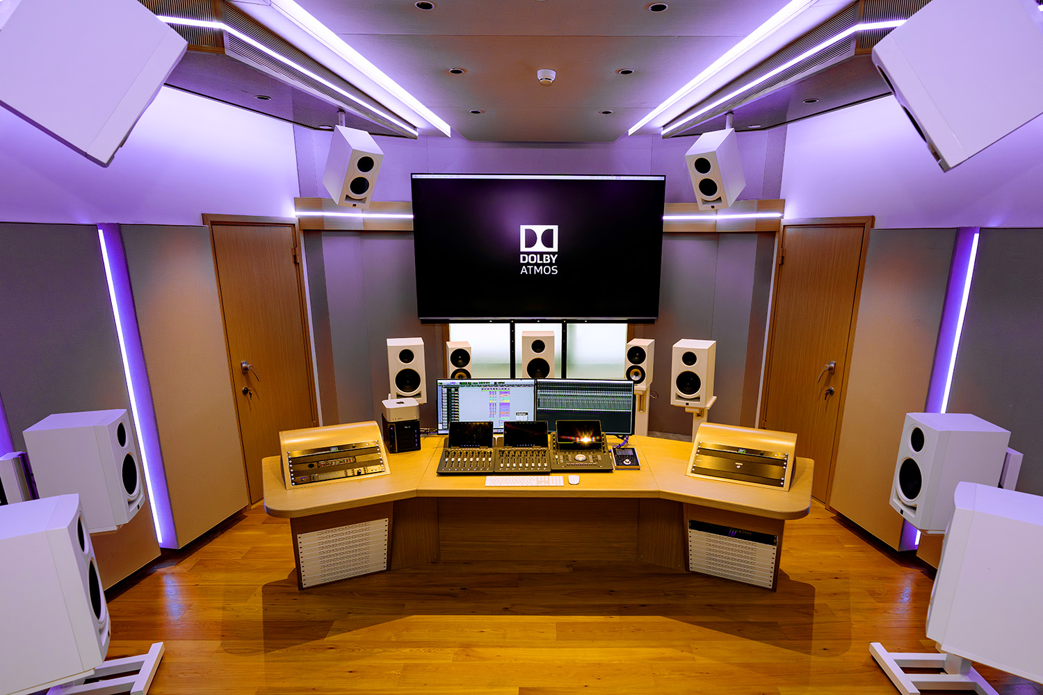 Control Room D is also an immersive mix room, and includes a Kali 7.1.4. Atmos Monitoring System.