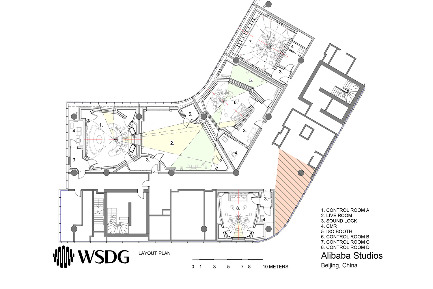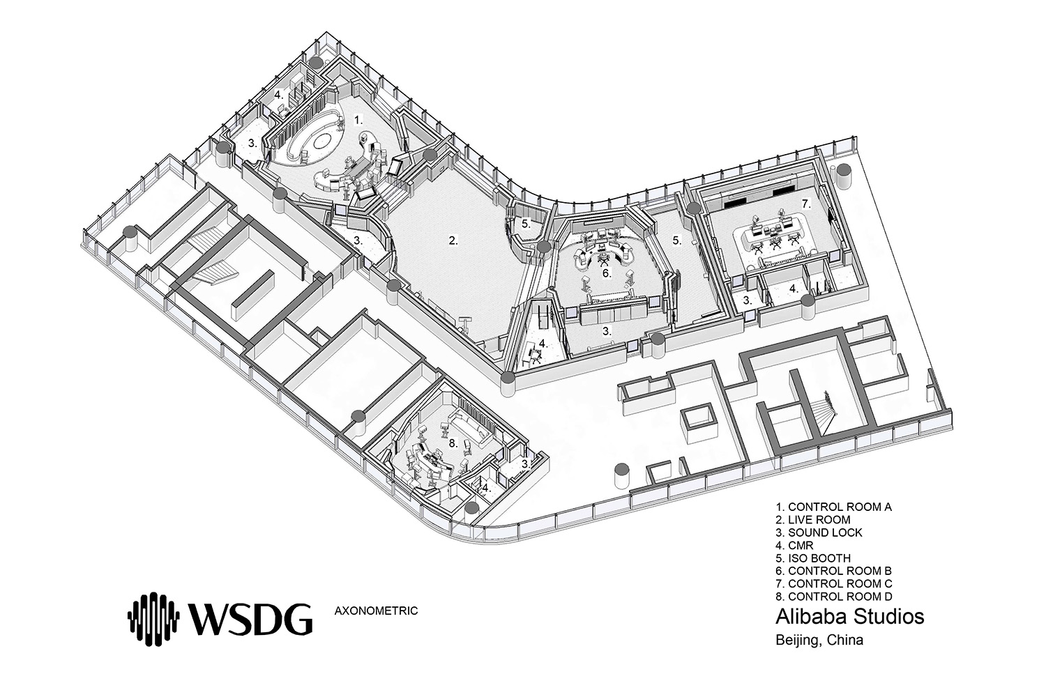 The WSDG team was tasked with a full recording studio design and systems package for the new facility, including master planning, architectural acoustic design, technical interior design, and A/V systems design. WSDG was also entrusted with defining the visual identity of the facility as a whole, as well as giving each studio section its own unique feel matched to its purpose.