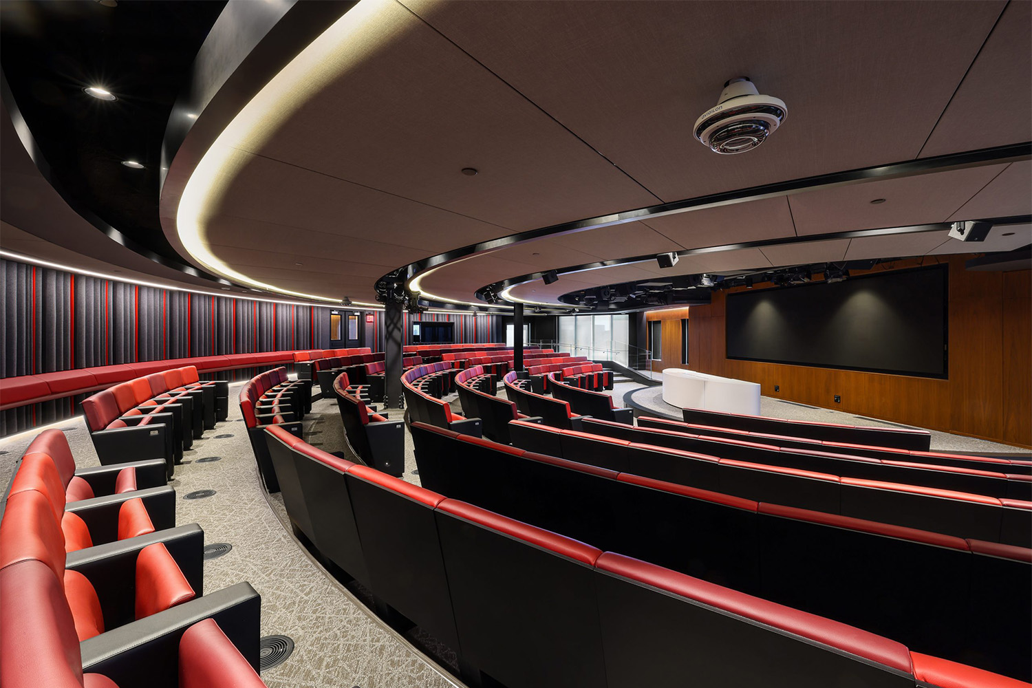 The WSDG team also designed A/V for the facility’s onsite TV studio including its studio lighting infrastructure and specifications for robotic cameras, cranes, and A/V systems. The studio is served by an adjacent control room that can operate the cameras remotely and be responsible for all production tasks. WSDG also conducted electroacoustic analysis and specified the A/V systems and automated video equipment for the HQ’s Auditorium and spec’d its signature 20×6 foot main LED screen.
