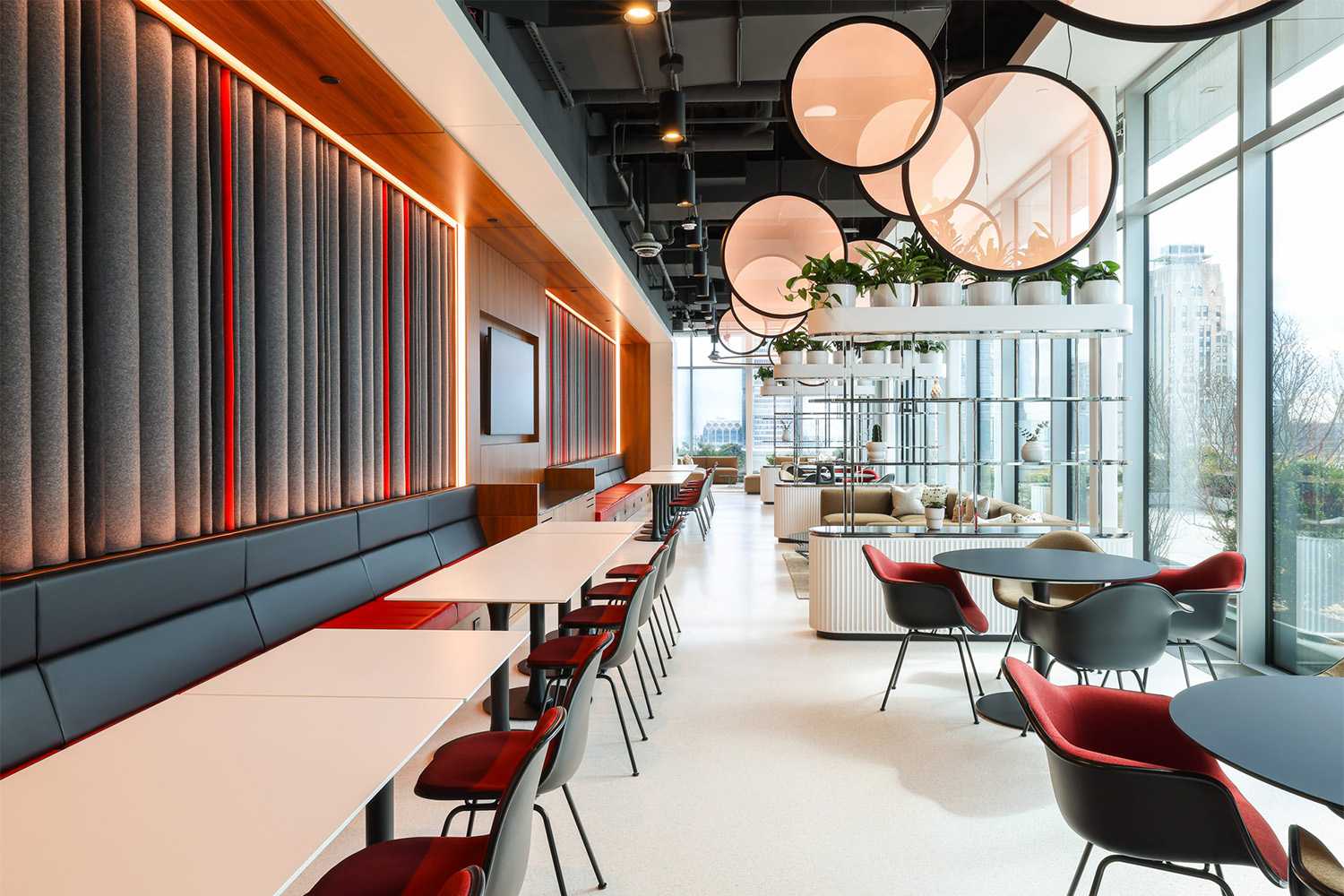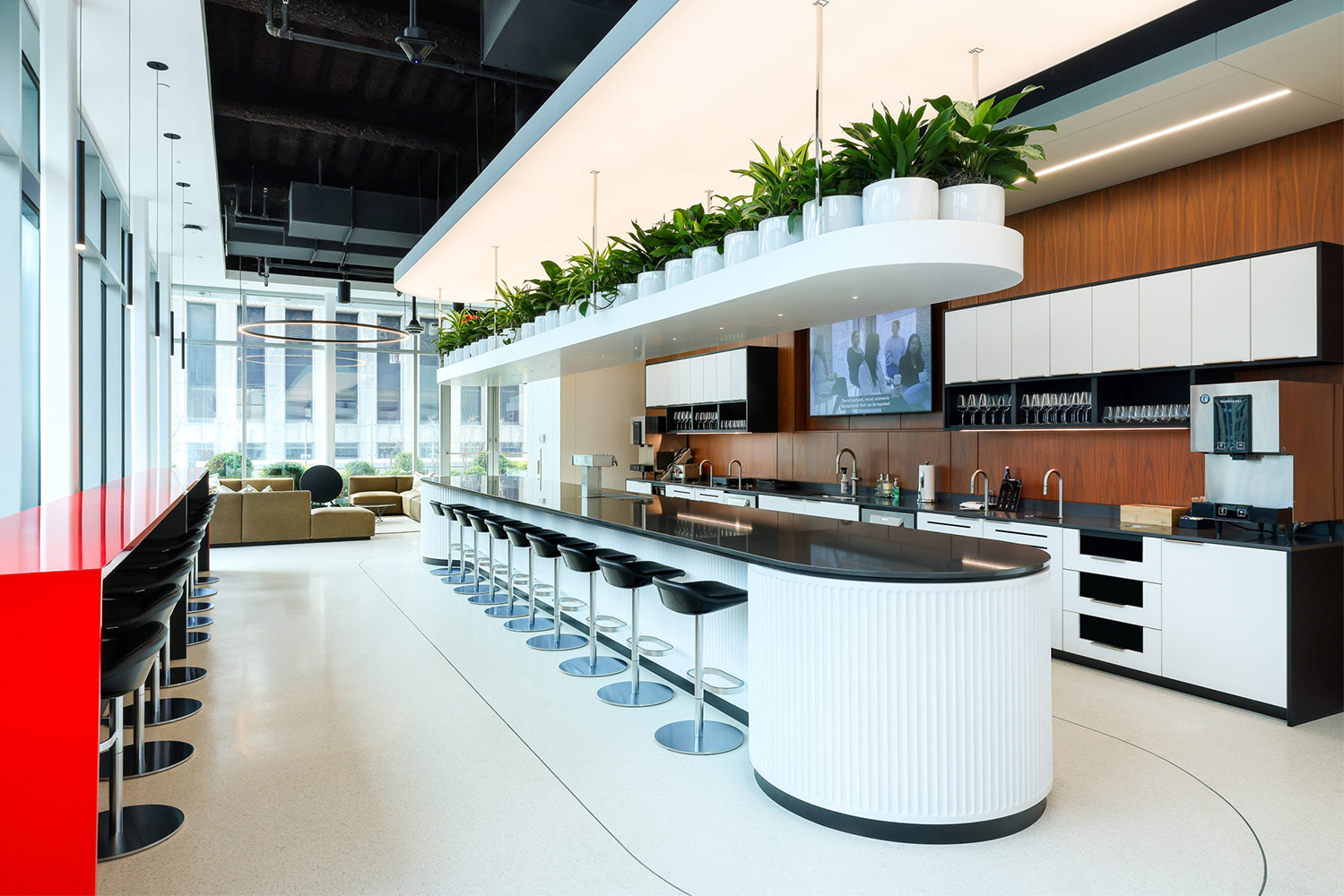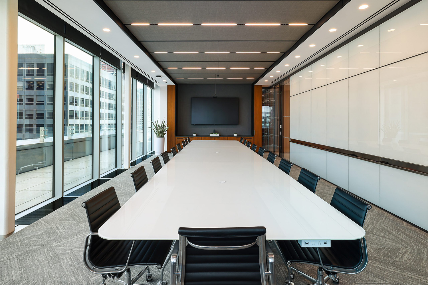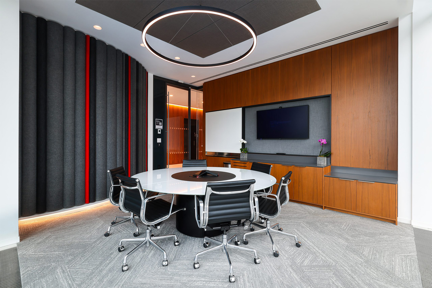 Spread out over five stories, the Global Relay HQ is a high-end modern office facility with a mixture of open-plan desks, huddle and conference rooms, and larger meeting and production spaces. WSDG designed a comprehensive, distributed A/V system with a best-in-class communication network that includes cameras, televisions, phones, and teleconferencing technology in every meeting space and huddle room. Each of these spaces was modeled down to the finest detail with every piece of technology specified at the highest level.