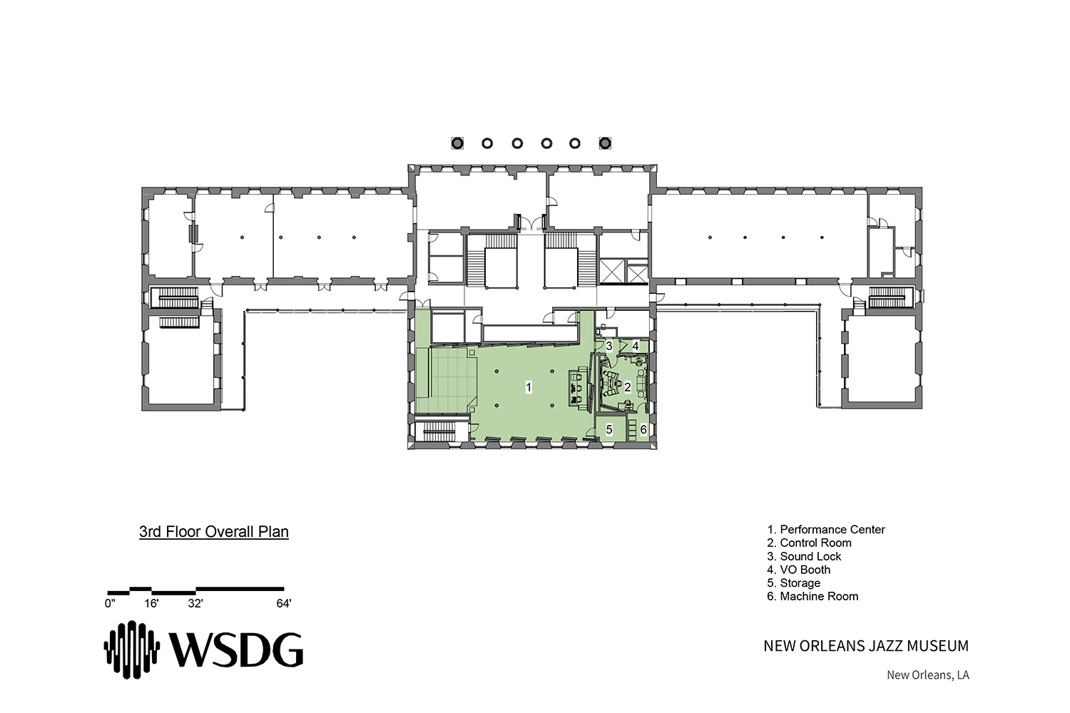 WSDG was brought into the project by the Herb Alpert Foundation to redesign the recording studio space and update interior room acoustics and A/V for the live performance space. The team partnered with Trapolin-Peer Architects and NOLA Jazz Chief Production Engineer Danny Kadar.