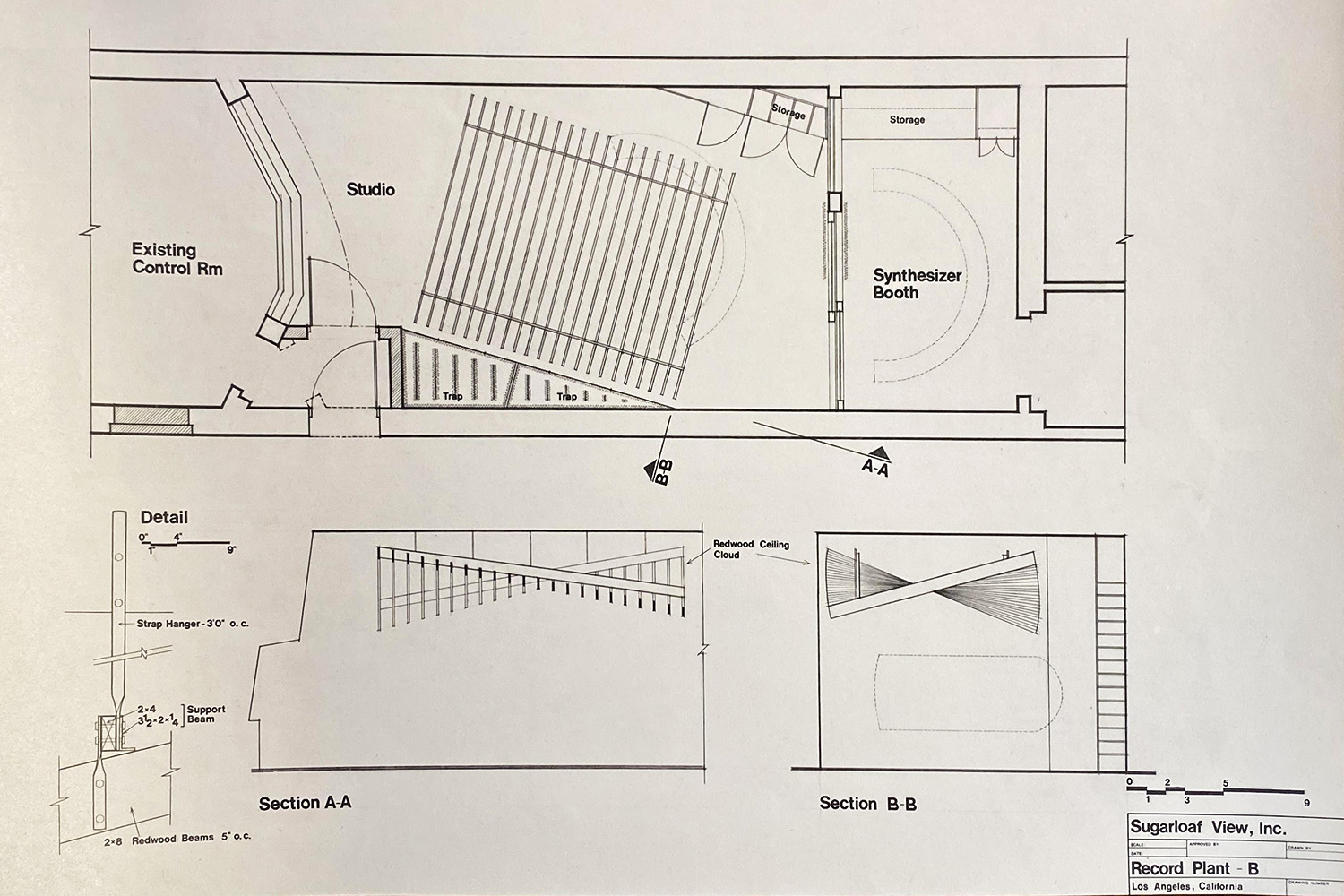 Record Plant West opened in Los Angeles in 1969, and Studio of B of Record Plant West was designed soon after as an all-in-one creative space specifically for Stevie Wonder. Studio B was a direct collaboration between WSDG Founding Partner and Director of Design John Storyk and Tom Hidley. The studio was built around a customized booth for Wonder’s TONTO (The Original Neo Timbral Orchestra – designed and built by Malcolm Cecil and producer/engineer Robert Margouleff) synthesizer, as well as a large live room and a customized control room.