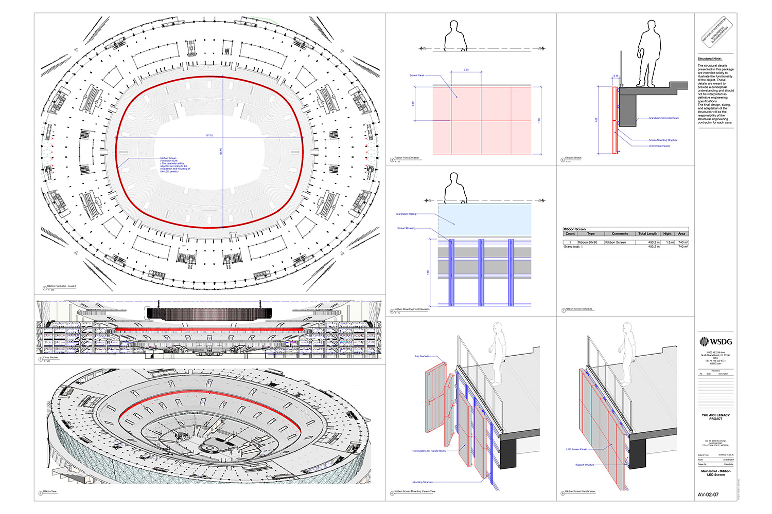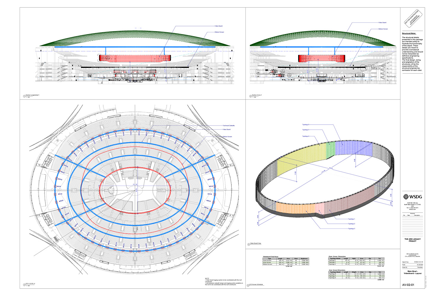 WSDG has a proven track record with high-profile, stadium sized projects across the world. All WSDG offices are working closely with architect Gbenga Alalade, lead architect and project director, with drawings completed by The Covenant University department of Architecture. WSDG is delivering acoustic 3D modelling, isolation acoustics, and internal room acoustic predictions to ensure excellent intelligibility and coverage throughout the bowl. Additionally, WSDG is responsible for AV systems and theatrical technology design for the entire project, including one of largest LED 360 video screens (+7,000m²) in the world, as well as cutting-edge infrastructure for audio, video and streaming.